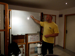 Po završetki teorijskog dela nastave usledio je test u kome su polaznici morali da pokažu adekvatan nivo teorijskog znanja kao i planiranje svih relevantnih činilaca (količine gasa, CNS, OTU, logistika izrona, back-up i dr.) za zarone do 120m sa upotrebom do 4 deko gasa. |