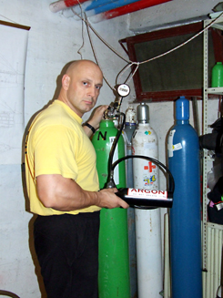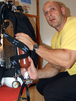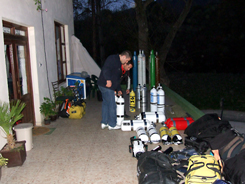 Ponevši gasove u bocama koje su za ovaj zaron zamešane u Beogradu održali smo kratak brifing i nestrpljivo pošli na zaron.