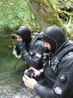 Najzad, došao je i trenutak da se sastavi oprema i krenemo. Prvi tim koji je nosio i dekompresioni gas uputio se ka vrelu sa zadatkom, da postavi liniju iz jezera kroz kavernu do ulaza u pećinu. Zatim je trebalo da ispita stanje linija do dubine koju je moguće bezbedno dostići. |